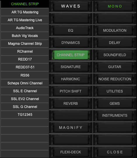 - Nearly 200 Plugins managed by Flexi-Deck into Menus and Categories such as Eq, Dynamics & Harmonics